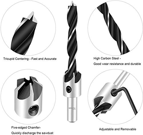 MALAYAS Punte Trapano Svasatore 8 Pezzi per Legno 3,4,5mm Punta da Taglio Smusso per Lavorazione del Legno, Fresa in Acciaio ad Alta Velocità a tre Punte, con una Chiave Esagonale Libera per il Legno