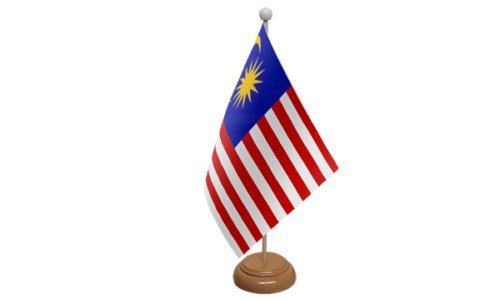 Malesia piccola bandiera da tavolo con supporto in legno + 59 mm spilla