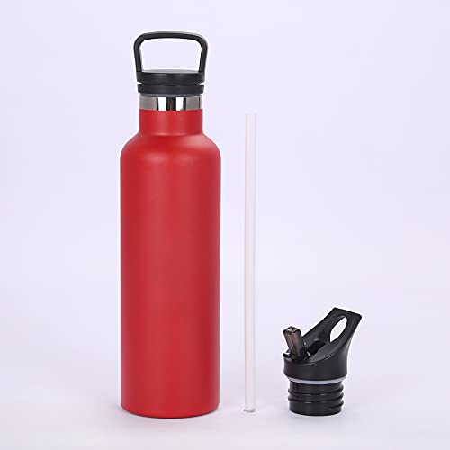 Malidily Bottiglia Termica in Acciaio Inox, 600ml Senza BPA Bottiglia Acqua + Cannuccia (2 Tappi), Borraccia Termica Isolamento sottovuoto a Doppia Parete, 24 Ore Freddo & 12 Caldo (Rosso)