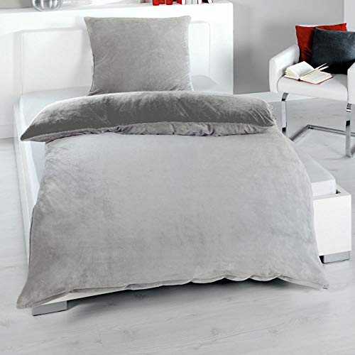 MALIKA invernale peluche reversibile Biancheria da letto, Nicky Teddy 'Cashmere Touch' 135 - 155 - 200 X 200 Coral Fleece, Argento/Antracite, 135 x 200 cm