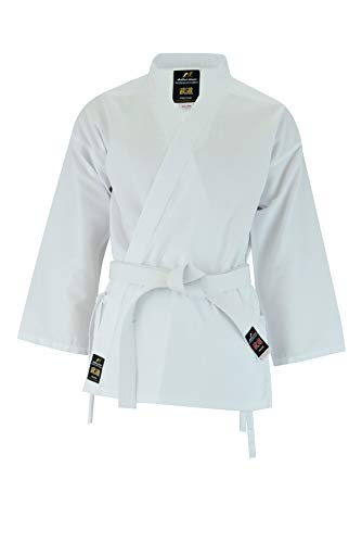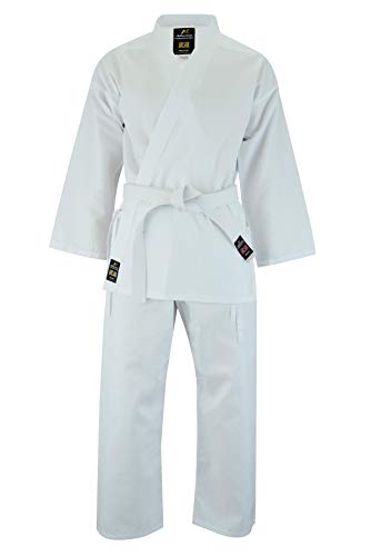 Malino Karate Gi, tuta da karate, uniforme da karate per bambini, uniforme da uomo adulto, PC 6oz, cintura gratuita, (00/120, bianco)