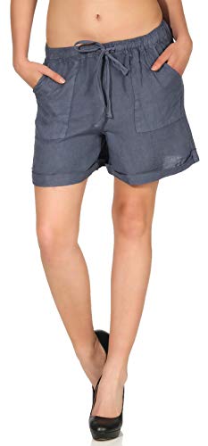 Malito Donna Lino Pantaloni Bermuda Libero Spiaggia Pantaloni 1965 (Color di Jeans, S)