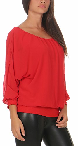 Malito Elegante Camicetta Lunghe Pipistrello-Guarda 6291 Donna Taglia Unica (Indossabile per Taglie dalla 38 alla 46, Rosso)