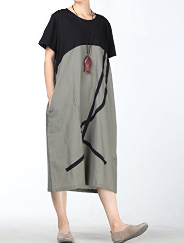 Mallimoda Donna Estate Abito Sciolto Manica Corta Stampa Vestito Grigio L