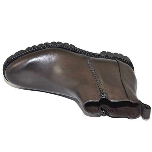 Malu Shoes Scarpe uomo beatles chelsea stivaletto vera pelle marrone con zip fondo gomma roccia zigrinato alto made in italy (40 EU)
