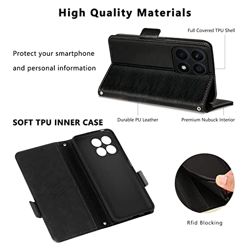 MAMA MOUTH Cover Honor X8a 4G, Custodia Flip Pelle Portafoglio, Magnetica Libro Slot Schede Honor X8a Cover, Silicone TPU Bumper Wallet con Supporto Antiurto Case Per Honor X8a Nero