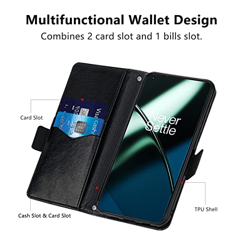 MAMA MOUTH Cover OnePlus 11 , Custodia Flip Pelle Portafoglio, Magnetica Libro Slot Schede OnePlus 11 5G Cover, Silicone TPU Bumper Wallet con Supporto Antiurto Case Per OnePlus 11 Nero