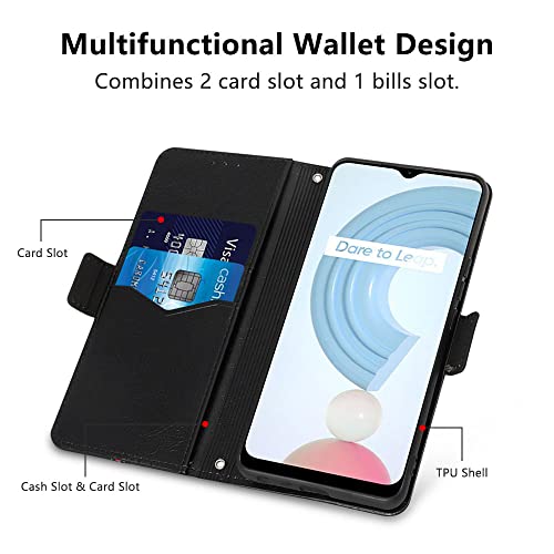 MAMA MOUTH Cover Realme C21Y / Realme C25Y, Custodia Flip Pelle Portafoglio, Magnetica Libro Slot Schede Realme C21 Cover, Silicone TPU Bumper Wallet Supporto Antiurto Case Per Realme C21Y/C25Y Nero