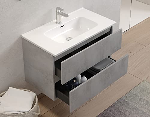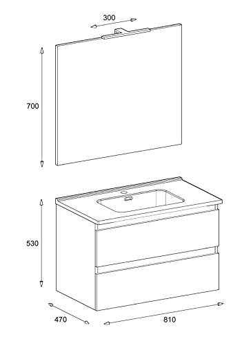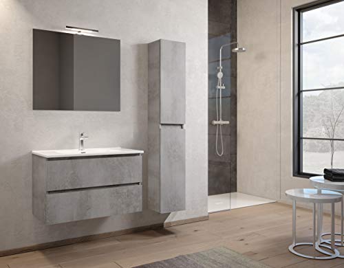 MaMa Store Atena Mobile sospeso con lavabo, specchio e lampada LED, Laminato, Grigio Cemento, L. 81 X P. 47 X H. 53 CM