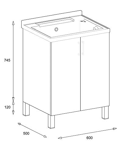 Il mobiletto ha le seguenti dimensioni: LARGHEZZA 60 cm - PROFONDITA' 50 cm - ALTEZZA 86 cm. E' dotato di 2 maniglie in alluminio e di 4 piedini cromati (H. 12 cm) da fissare sulla base della struttura tramite vite e istruzioni presenti nell'imballo. Un utensile perfetto per arredare la tua zona lavanderia.