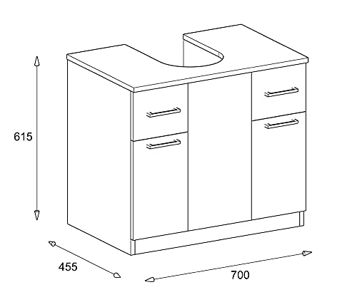 MaMa Store Base Copricolonna Sottolavabo con 2 Ante e 2 Cassetti, Quercia Naturale, L. 70cm x P. 46cm x H.62cm