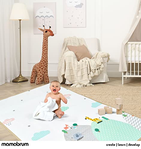 Mamabrum Tappetino da Gioco per Bambini, 120 x 180 x 0,5 cm, Ecologico, Atossico, Tappetino in Schiuma Ispessita, Impermeabile, Antiscivolo, Portatile, Foresta e Città