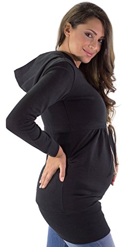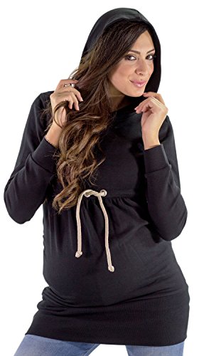 MAMAJEANS Felpa Premaman con Cappuccio e Cordoncini per Regolazione in Vita, Cotone, Made in Italy (S, Nero)