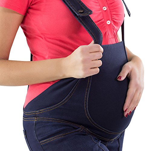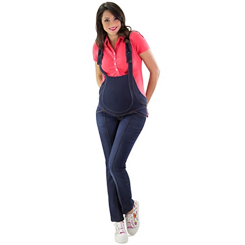 MAMAJEANS Salopette Premaman di Jeans con Fascia in Jersey, Lavaggio Deluxe e vestibilità Regular - Made in Italy (XL, Denim)