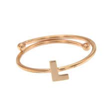 Anello realizzato in filo tondo sottile rigido in oro argento 925 placato oro rosa letterina 5 mm L'anello è aperto dietro e quindi regolabile regolabile Un gioiello artigianale originale Maman et Sophie