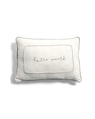 Mamas & Papas Welcome to The World - Cuscino ricamato per la cameretta dei bambini, 43 x 30 cm, colore: Bianco/Grigio Elefante