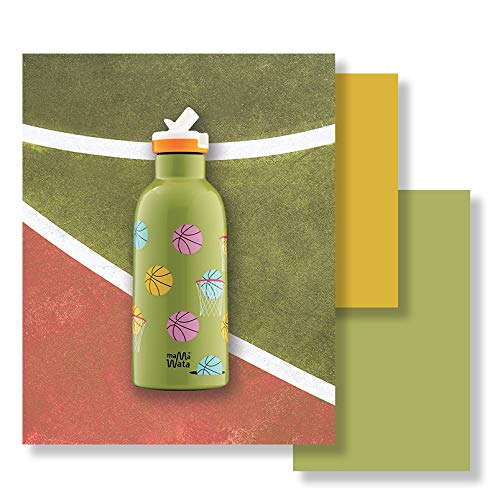 MamaWata - Borraccia Termica con Cannuccia 470 ml, Borraccia Palestra Sport Ermetica Acciaio Inox, Bottiglia Termica 24h Cold 12h Hot Personalizzata Basketball, Borracce Termiche BPA e Plastic-Free