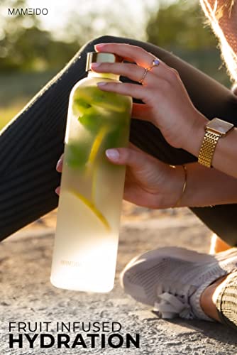 MAMEIDO Bottiglia acqua 1 litro Frosted White Gold - Borraccia plastica tritan a tenuta stagna, senza BPA - bottiglia motivazionale con orario per sport, università, acqua detox