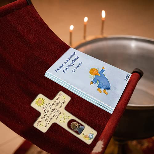 MaMeMi _Taufkreuz Für Jungen: Kreuz mit Sonne, Mond und Schutzengel