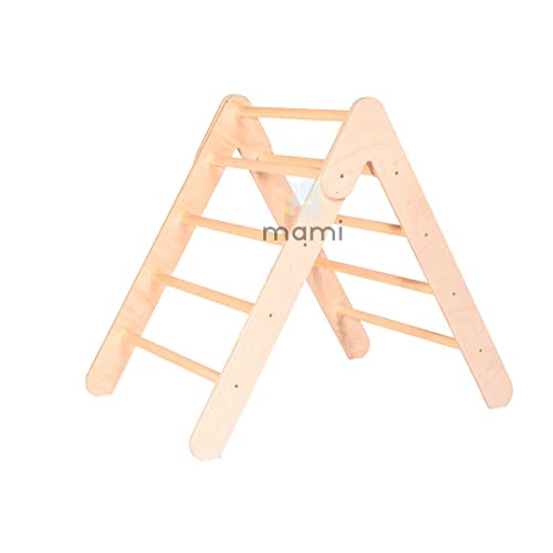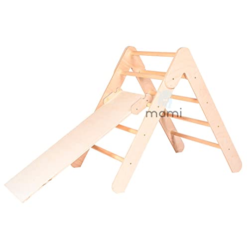 Mami srl Triangolo di Pikler Richiudibile con Scivolo, Struttura per Arrampicata per Bambini per Interno in Legno Naturale, Giochi Educativi Montessoriani
