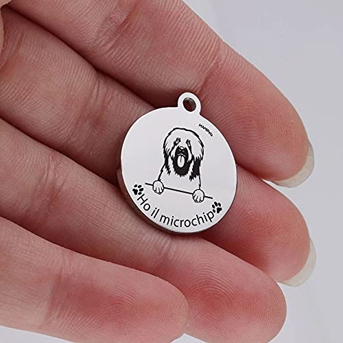 2 Misure di grandezza medaglietta in acciaio inossidabile fondo specchio (Small=2,5x3cm, Medium=3x3,5cm) resistente all'acqua dolce, all'acqua salata, alla ruggine. La medaglietta è fornita di anello di collegamento al collare/pettorina