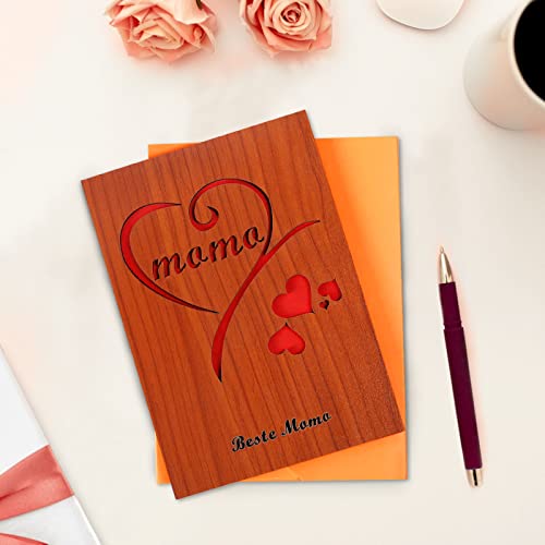 Carta da regalo 'Design uniche per la mamma. Design a forma di cuore con lasergeschnittenen "Mom al centro, in vero legno e carta importato di alta qualità con stampa ecocompatibile all' interno.