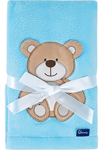 Be Mammy Coperta con Ricamo 3D Neonato e Bambino 76 x 102 cm BE20-168 (Blu - Orso)
