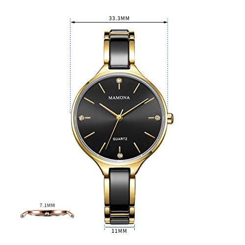 MAMONA Orologio Braccialetto da Donna Set Regalo Cristallo Con Accenti in Ceramica Acciaio Inossidabile L3877GT