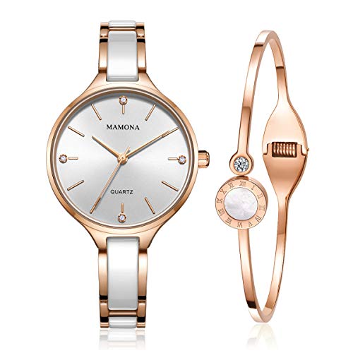 MAMONA Orologio Donna Regalo Cristallo Con Accenti in Ceramica e Acciaio Inossidabile L3877