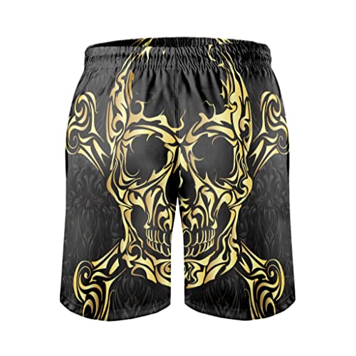 Costume da bagno alla moda: stampa 3D Swim Trunks con teschio dorato e teschio. Il design alla moda e i colori gabbiosi rendono i pantaloncini da surf accattivanti, senza mai sbiadire e sbucciarsi.