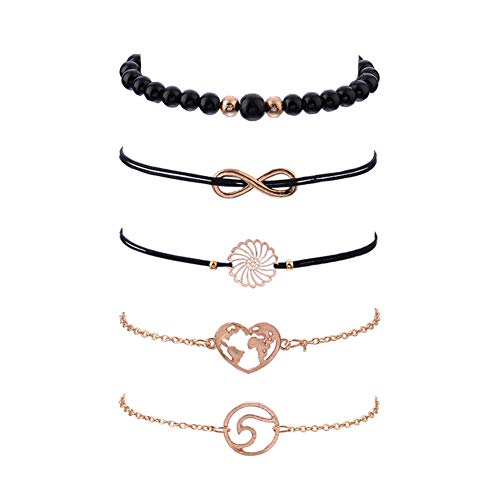 Genere: Da donna, Materiale: lega, corda intrecciata. Quantità: 5 pezzi. Occasioni: Abbigliamento quotidiano, club, shopping, viaggi, feste, ecc. Caratteristiche: Charm a forma di fiore, regolabile, lavorazione fine, lunghezza: 17 cm + 5 cm circa.