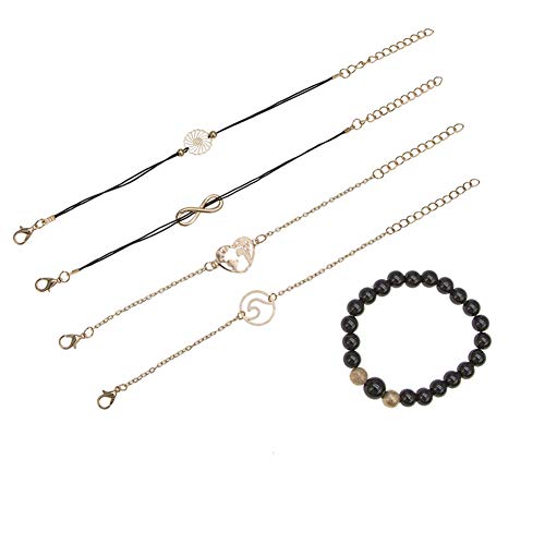 Man9Han1Qxi 5 pezzi/set fiore cavo, 8 charm perle, collana intrecciata, corda intrecciata, braccialetto nero per donne uomini Nero