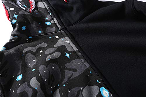 Manbozix Felpa con Cappuccio da Uomo Felpa Full Zip Patchwork con Testa di Squalo Luminoso XXL