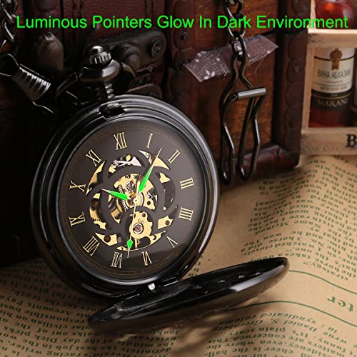 ManChDa Mezza Hunter Numeri Romani Dragon e Phoenix Modello Hollow Meccanica Orologio da tasca(Nero/Bronzo/Argento)