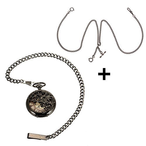 ManChDa Orologio da taschino meccanico Dream Dragon Skeleton Bronzo nero/quadrante nero/argento Cassa doppia con catena + confezione regalo (2. MPH009)