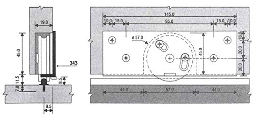 Carrello con ruota Ø 45 mm e supporto regolabile 145x50 mm per sistema di scorrimento armadi., Materiale: Alluminio, Nylon, Misure come da immagini.