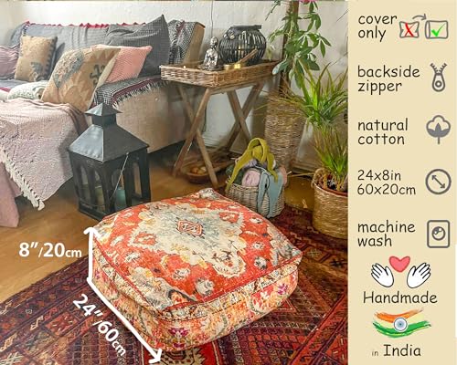 Mandala Life ART Fodera per Cuscino da Pavimento Quadrato Bohémien - 60x20 cm - 100% Cotone - Custodia pouf per pouf per Soggiorno, Camera da Letto, patio e Altro