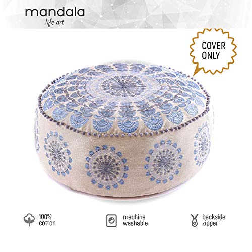 Mandala Life ART Fodera per cuscino da pavimento rotondo bohémien - 60x20 cm - 100% cotone - Custodia pouf per pouf per soggiorno, camera da letto, patio e altro