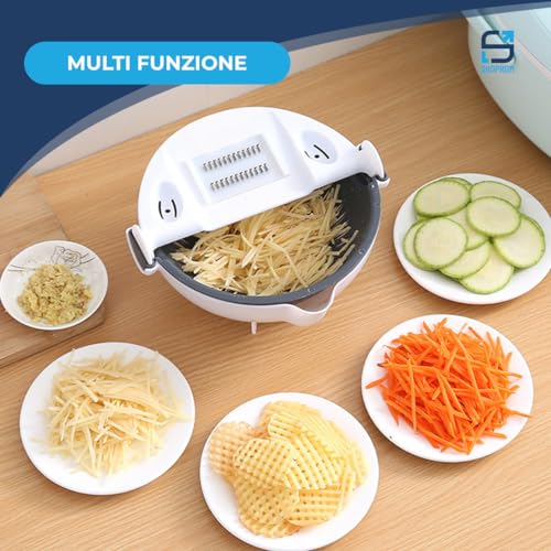 Mandolina Affetta Verdure Regolabile Manuale - Affettatrice per Verdure Multifunzione Professionale con Scola Verdure - Grattugia Taglia Verdure a Cubetti o Julienne e Separatore Uova