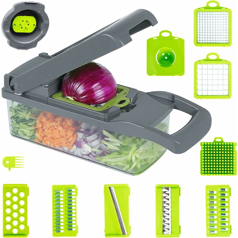 Mandolina da cucina multifunzione - La mandolina da cucina multifunzione contiene 6 lame intercambiabili, 1 cestello di scarico, 1 separatore di uova.Puoi utilizzare una varietà di opzioni di taglio e reinserire rapidamente la lama per preparare rapidamente piatti deliziosi. È uno strumento da cucina molto pratico che può aiutarti a semplificare il processo di cottura. 【Materiale di qualità】 Il mandolino da cucina professionale è realizzato in ABS e acciaio inossidabile di alta qualità, privo di BPA, non è tossico e insapore.Tutte le lame di questo tritaverdure sono realizzate in acciaio inossidabile antiruggine e ultra affilate.Ti assicuriamo che. 【Facile da pulire】Tutte le parti della verdura multifunzione possono essere facilmente smontate e può essere risciacquato direttamente sotto l'acqua.Non toccare la posizione di taglio con le mani durante la pulizia. Usa gli artigli di pulizia per rimuovere i residui sul sigillo. 【Design antiscivolo】Non facile da staccare e antiscivolo, con