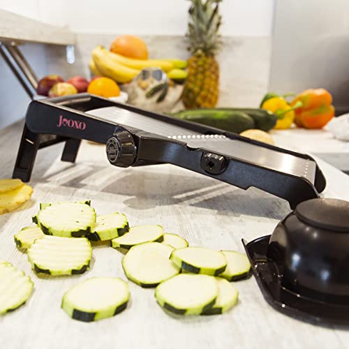 EFFICIENTE E FUNZIONALE - Questa mandolina per verdure professionale a spessore regolabile è facile da usare: la manopola rotante permette di regolare la lama e ottenere fette da 3 mm a 9 mm, o un taglio a julienne da 4,5 mm o 9 mm. Questo rende la mandolina affetta verdure manuale perfetta per preparare tantissime ricette sane e originali. Taglia Verdure e Frutta.