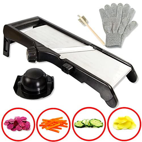 Mandolina Giapponese | Mandoline per verdure professionale Multiuso | Affetta Verdure Manuale in Acciaio Inox a Lame Regolabili | Fette Lisce Ondulate o a Julienne
