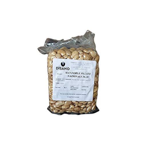 1 Kg Mandorle Intere Pelate Nazionali Calibro 36-38 per Dolci e Gelati National Whole Peeled Almonds
