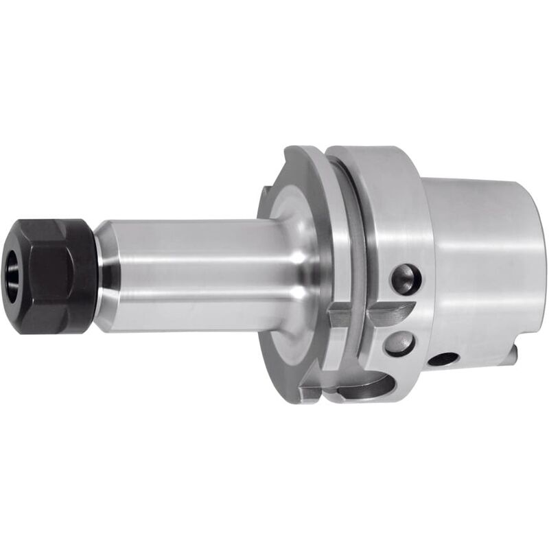 Con foro per chip Balluff/RFID. * Tutti i codoli con tornitura dura (silenziosità!). * Foro passante allargato (senza vite di regolazione). * Superfici funzionali HSK lavorate. Uso: Per il serraggio di utensili con codolo cilindrico nelle pinze ER a norma DIN 6499 - Forme A e B. Fornitura: Inclusa ghiera di serraggio high speed rivestita. Accessori speciali: Raccordo per lubrorefrigerante n. art. 309880, chiave a bussola n. art. 309890, pinze di serraggio ER n. art. 308881 − 309434, chiave di serraggio ER n. art. 309680 o 613300. Dati tecnici Precisione della concentricità radiale µm ≤ 3 Foro Balluffchip sì Forma A Qualità equilibratura G con numero di giri G 2,5 con 25000 min-1 Strategia di truciolatura HSC Adattatore HSK-A 100 A = 130 Tipo di prodotto Mandrini a pinza Campo di serraggio, mm 2 - 20 ⌀ Attacco D1, mm 2-20 Sporgenza totale Dim. A, mm 130 Per pinze di serraggio ER 32 ⌀ Esterno D, mm 50