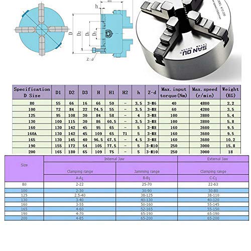 Mandrino autocentrante a quattro ganasce Chuck 4, per fornelli a tornio, 80/100/125 mm