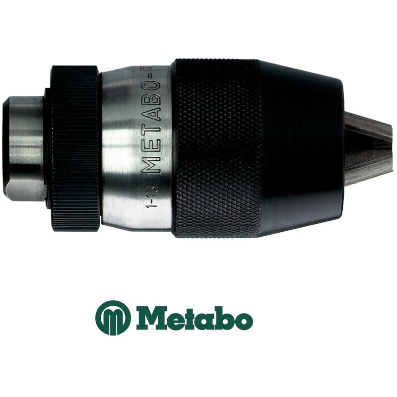 METABO MANDRINO AUTOSERRANTE IN ACCIAIO PUNTE DA 3-16mm CON ATTACCO CONICO B16 Il primo mandrino autoserrante resistente alle percussioni, con sicura di serraggio a cricchetto e doppia protezione antipolvere Senza chiave per una rapida sostituzione dell'utensile Tenuta sicura dei pezzi serrati anche in caso di massima sollecitazione Il soffietto in gomma resistente all'olio e all'usura protegge dallo sporco la filettatura e gli accoppiamenti Solo per utilizzo a rotazione destrorsa Dati tecnici Apertura 3 - 16 mm Filettatura interna B16 Ø esterno 50 mm Lunghezza (chiuso) 113 mm Peso 1 kg