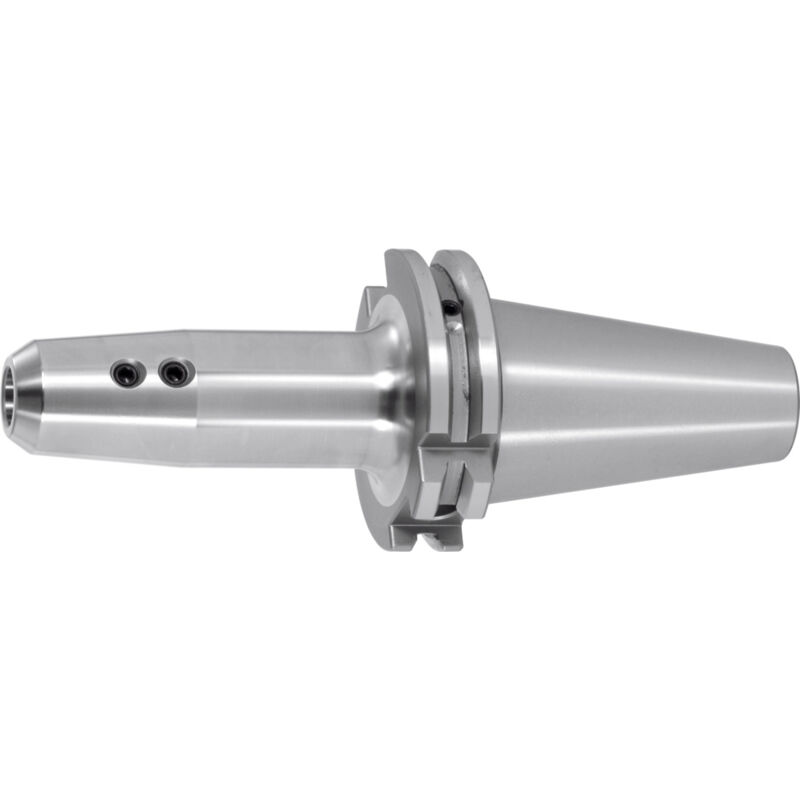 Tolleranza di alesaggio D1 in H4 (più precisa rispetto a DIN). Codoli con tornitura dura (silenziosità!). Con foro Balluffchip / RFID. Uso: Per il serraggio di utensili con codolo cilindrico a norma DIN 1835 Forme B + E e DIN 6535 Forme HB + HE. Fornitura: Con vite di serraggio a giunto sferico per sistema Weldon e Whistle Notch e vite d'arresto forata. Accessori speciali: Codoli (AB) n. art. 308600 − 308806, chiave di serraggio AB n. art. 308820 - 308835, vite di serraggio di ricambio 309905 M6, 309905 M8. Dati tecnici Adattatore BT 40 A = 100 Forma ADB Qualità equilibratura G con numero di giri G 2,5 con 25000 min-1 Norma attacco ISO 7388-1 Precisione della concentricità radiale µm ≤ 3 Norma DIN 6359 Tipo di prodotto Mandrino ⌀ Attacco D1, mm 8 ⌀ D2, mm 15 Sporgenza totale Dim. A, mm 100 ⌀ D3, mm 20 ⌀ Esterno D, mm 30,33