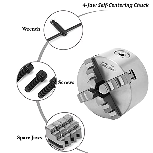 Mandrino a ganasce, 4 griffe K12-100 Mandrino autocentrante manuale in metallo resistente 3500 giri/min. 100 mm con ganasce extra Accessorio per tornio per tornio in metallo, mandrino per tornio