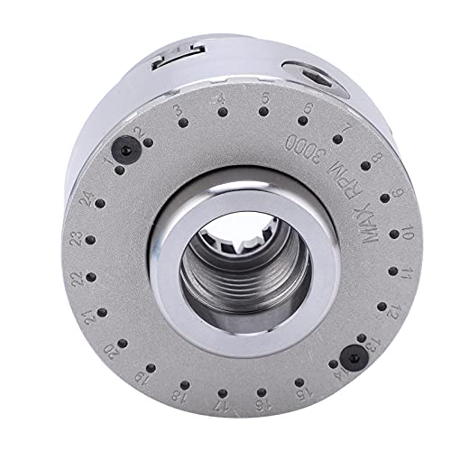 【Funzione di centraggio della regolazione automatica】 Il mandrino ha una funzione di regolazione e centraggio automatica, che è comoda e precisa. La gamma di serraggio è di 7‑63 mm, che può essere lavorata efficacemente ed è adatta per torni con portafili M33.