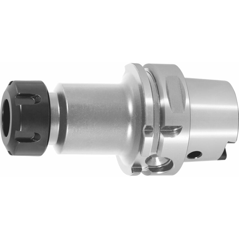 Con foro per chip Balluff/RFID. * Tutti i codoli con tornitura dura (silenziosità!). * Foro passante allargato (senza vite di regolazione). * Superfici funzionali HSK lavorate. Uso: Per il serraggio di utensili con codolo cilindrico nelle pinze ER a norma DIN 6499 - Forme A e B. Fornitura: Inclusa ghiera di serraggio high speed rivestita. Accessori speciali: Raccordo per lubrorefrigerante n. art. 309880, chiave a bussola n. art. 309890, pinze di serraggio ER n. art. 308881 − 309434, chiave di serraggio ER n. art. 309680 o 613300. Dati tecnici Strategia di truciolatura HSC Foro Balluffchip sì Forma A Qualità equilibratura G con numero di giri G 6,3 con 20000 min-1 Precisione della concentricità radiale µm ≤ 3 Adattatore HSK-A 100 lungo Tipo di prodotto Mandrini a pinza Campo di serraggio, mm 3 - 26 Sporgenza totale Dim. A, mm 120 Per pinze di serraggio ER 40 ⌀ Esterno D, mm 63